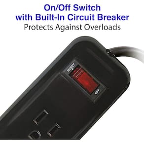 Esta tira de alimentação de tomada Clear Power DC3S-00232P-DC 6 é compacta o suficiente para espaços apertados, mas ainda parece elegante. O interruptor aceso/desligado tem um disjuntor embutido para proteger contra sobrecargas. Ele também tem um plugue de baixo perfil que permite que os móveis sejam colocados mais perto da parede sem danificar o cabo. 15Amps/125Volts/1875Watts