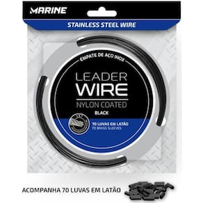 Os Cabos de aço Marine Sports inoxidável revestido com nylon transparente com 10 metros. Cabos de aço super-resistente feito para encastoar anzóis, empates, pernadas, chicotes e snaps, incluso pacote de luvas com 70 unidades, confecção simples e eficaz.