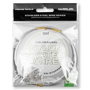 Os Cabos de aço inoxidável Maruri tem 5 metros e são revestidos com nylon transparente, acabamento em nickel ou black. Cabos de aço super-resistente feito para encastoar anzóis, empates, pernadas, chicotes e snaps, incluso pacote de luvas com 35 unidades, confecção simples e eficaz. Cabo De Aço Maruri são ótimos para iscas artificiais, assim, evitando que peixes com dentição tipo traíras, dourados e outros consigam romper suas linhas.