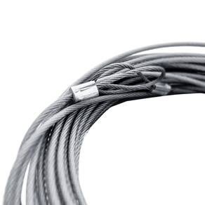 - Tamanho: 11m de comprimento; - Material: Cabo de aço galvanizado com revistimento plastificado e pontas prensadas; - Espessura: 3,2mm.