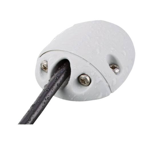Acessórios de alimentação à prova d'água de ângulo reto da série RA roteie os cabos em 90 através de superfícies verticais e horizontais com design discreto que envolve a parede que mantém o cabo preso perto da superfície, reduzindo a intrusão com pessoal ou outros equipamentos/cabos. Moldada em nylon, a forma esculpida não tem bordas afiadas e oferece 90 dobras de alimentação radiadas em cabos sem danos. Fácil instalação: deslize os anéis de compressão de silicone no cabo, monte a peça base com junta à prova d'água e prenda a tampa da extremidade de vedação para criar uma vedação à prova d'água IP 65. Observe que o cabo deve ser roteado sem o conector final conectado. Três modelos para acomodar uma ampla gama de diâmetros de cabo. Faixa de diâmetro do cabo modelo (centímetros) Dimensões (centímetros) RA-1 0,1 – 0,25 2,17 x 1,65 x 0,63 RA-2 0,27 – 0,35 3,23 x 2,44 x 0,95 RA-3 0,39 – 0,47 3,23 x 2,4 cm 4 x 0,95 CCX Series Crie uma vedação 100% à prova d'água ao passar cabos através de cabanas de comunicação, cabnets, etc. Permite instalação/remoção com conector ainda anexado Nylon resistente a intempéries com vedação de neoprene Orifício de entrada pré-perfurado Modelo Diâmetro do Cabo. Diâmetro máximo de conexão. CCX-R .47?-.59? 1.57? 1.57? CCX-S .35?-.55? .83? .83? CCX-T .18?-.35? .83? Série DX semelhante à série CCX, exceto o instalador faz furos na vedação para acomodar cabos. Vários cabos podem ser roteados através de um conector de encaixe único. Diâmetro máximo da abertura D X-2 1,2 ? 1,2? DX-3 1,65 ? 1,65 ? DX-5* 2,0 ? 2,0 ? * Folha de dados de download de caixa de alumínio (PDF)
