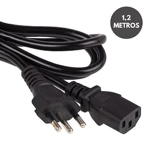 O cabo possui três pinos em sua extremidade, o que garante uma conexão firme e segura com a fonte de alimentação do computador e a tomada elétrica. Sua construção de alta qualidade inclui materiais de PVC duráveis e um revestimento resistente a rasgos e dobras, garantindo que ele possa ser dobrado e torcido várias vezes sem comprometer sua integridade.