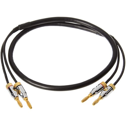 Amazon Basics Fio de cabo de alto-falante Banana Plug 16AWG, classificação CL2 com plugues de ponta banana banhados a ouro (4 mm), fio de cobre trançado 99,9% livre de oxigênio, 3 pés, preto - Cabo de áudio de 90 cm para alto-falantes, amplificadores, unidades A/V e muito mais - Os plugues banhados a ouro com ponta de banana (4 mm) proporcionam um sinal claro com o mínimo de distorção - O fio de cobre trançado sem oxigênio oferece clareza e precisão sônica - Bota de PVC flexível e antiderrapante e bainha de cabo para durabilidade e proteção - Caixa resistente à corrosão - Classificação CL2 para uso na parede; Medidor de fio 16AWG, OD do cabo: 8 mm