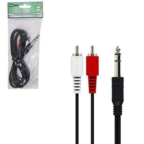 Informações adicionais: Ean: 7908028204970 Validade: indeterminada Tamanho aproximado: 1,5m Peso aproximado: 55g Tipo de produto: cabo de audio p10 x 2rca na solapa Cor: preto Composição: plastico e cobre