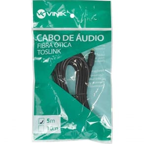 Cabo De Audio Toslink 5m Atc-5 Descrição: Cabo de Áudio Toslink em Fibra Óptica Vinik é ideal para a transmissão de som com qualidade digital e livre de interferências e distorções. Melhor qualidade de áudio em fibra óptica Vinik; Indicado para uso em blu-rays, televisores, receptores de imagens digitais, vídeo games, receivers, DVD, home theaters ou outros equipamentos que utilizam esse sistema; Dados técnicos: Suporte para áudio Dolby DTS 7.1; Cabo Toslink/Toslink; Cabo de Áudio Toslink em Fibra Ótica; Atenuação:<180dB/km; Revestimento: PVC; Comprimento: 5 metros Descrição: Cabo de Áudio Toslink em Fibra Óptica Vinik é ideal para a transmissão de som com qualidade digital e livre de interferências e distorções. Melhor qualidade de áudio em fibra óptica Vinik; Indicado para uso em blu-rays, televisores, receptores de imagens digitais, vídeo games, receivers, DVD, home theaters ou outros equipamentos que utilizam esse sistema; Dados técnicos: Suporte para áudio Dolby DTS 7.1; Cabo Toslink/Toslink; Cabo de Áudio Toslink em Fibra Ótica; Atenuação:<180dB/km; Revestimento: PVC; Comprimento: 5 metros Ean: 7898547285690