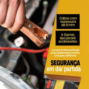 Com capacidade de transmissão de 800amp, este cabo de chupeta garante que você não fique na mão em momentos de emergência, evitando atrasos e transtornos necessários. Além disso, seu comprimento de 2 metros permite maior flexibilidade na hora de fazer a conexão entre os veículos.