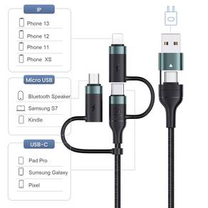 Cabo multifuncional USAMS 60W 5 em 1 com USB + Tipo-c para Micro USB C IP que carregará dispositivos Android e laptops. Apenas um cabo de carregamento para todos!
