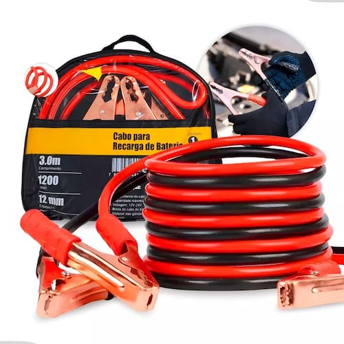 Cabo de Chupeta Auxiliar 1200AMP para Carro e Caminhão Os cabos de carga automotivos 1200AMP com espessura de 12 mm e comprimento de 3 metros são indispensáveis para quem busca eficiência e segurança na hora de carregar a bateria de veículos.