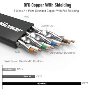 ? Alta velocidade: suporta transferência de dados de alta velocidade de 600 MHz para aplicativos de servidor, armazenamento em nuvem, bate-papo por vídeo, streaming de vídeo de alta definição e jogos. Os cabos Cat7 são a melhor geração