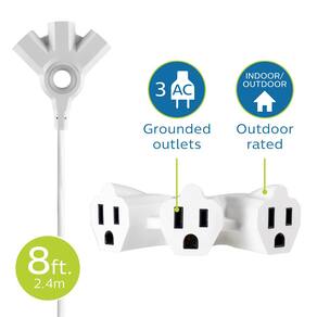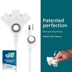 Philips EZGrip Cabo de extensão externo com várias tomadas, cabo de 3 pinos aterrado, cabo de extensão curto interno com várias tomadas, cabo de extensão resistente, 2,5 m, 16 AWG, branco, - Design EZGrip – Alças ergonômicas integradas facilitam a conexão e desconexão rápida e segura de eletrônicos, ferramentas elétricas, decoração de férias e muito mais — um produto CES 2023 Innovation Award - Alcance estendido – Com três saídas aterradas em um design de ventilador alargado, este cabo de 2,4 m é ótimo para decoração sazonal, bem como aparelhos e ferramentas como brocas manuais e serra de vaivém que exigem um alcance estendido - Resistente – O cabo de isolamento duplo e o plugue moldado oferecem durabilidade extra; a jaqueta de vinil resistente protege contra umidade, poeira e sujeira para melhorar a longevidade - Multiuso: use este cabo de extensão interno/externo em sua garagem, quintal, pátio e outros lugares para ferramentas, equipamentos de gramado, iluminação externa e decorações de feriado; jaqueta branca - Especificações – Este cabo de extensão aterrado de três fios e 16 AWG é classificado para 12 VAC/13 A/1625 W e estende três saídas aterradas de três pinos em um design alargado de qualquer receptáculo CA aterrado; listado por ETL