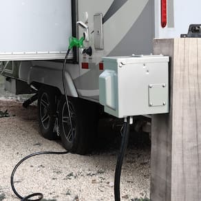 RVGUARD Cabo de extensão RV de 30 Amp 15 m, cabo STW resistente de calibre 10/3 com indicador de alimentação LED e organizador de cabos, plugue padrão TT-30P/R, verde, listado pela ETL - Classificação elétrica: cabo de extensão RV de 30 amp, com conectores padrão 30A macho (NEMA TT-30P) e 30A fêmea (NEMA TT-30R), classificado para 3750 Watt. - Durabilidade superior: construído a partir de jaqueta STW durável e resistente ao clima calibre 10/3. A estrutura de alívio de tensão torna o cabo difícil de quebrar. Aprovado pela ETL/cETL. - Alça de desconexão: mais fácil de conectar e desligar sem danificar o cabo, e mantém seus dedos longe da fonte de alimentação para evitar lesões acidentais. - Fácil de organizar: vem com uma bolsa de armazenamento e alça de plástico para deixar o cabo limpo quando não estiver em uso. Fácil de guardar em seu trailer ou garagem. - Indicação de energia: a luz indicadora de energia informa visualmente o usuário quando o cabo está conectado à fonte de alimentação.
