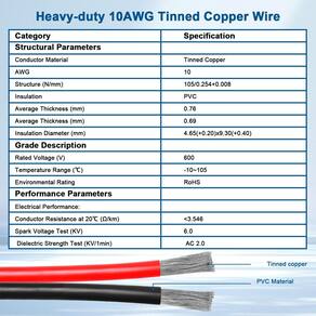 O cabo de extensão XT60 10AWG é projetado para usuários que exigem o melhor em durabilidade e desempenho. Feito com cobre estanhado, oferece alta condutividade e resistência superior à oxidação, tornando-o perfeito para aplicações de alta potência em modelos RC, drones e sistemas de bateria. Os conectores XT60 são conhecidos por sua capacidade de lidar com segurança com alta corrente, garantindo transferência de energia confiável para usos exigentes. A capa de PVC flexível e resistente ao calor protege o cabo contra desgaste, abrasões e calor, tornando-o adequado para uso em uma variedade de ambientes desafiadores. Projetado para minimizar a queda de tensão, este cabo de extensão garante transferência de energia eficiente, suportando até 600 V para aplicações como carregadores de bateria, fontes de alimentação e eletrônicos de alto desempenho. - Conectores XT60 para conexão confiável – Possui conectores XT60 projetados para manuseio seguro e de alta corrente, garantindo transferência de energia estável para veículos RC, drones, baterias e eletrônicos de alto desempenho. - Estrutura de cobre estanhado 10AWG durável – Feito com fio de cobre estanhado 10AWG resistente, este cabo de extensão xt60 de 10 AWG minimiza a perda de energia e oferece excelente condutividade elétrica, perfeito para aplicações de alta corrente, como modelos RC, drones e sistemas de energia. - Proteção termorretrátil durável – os conectores XT60 são reforçados com tubos pretos termorretráteis, oferecendo resistência adicional para evitar desconexões acidentais durante o uso, garantindo longevidade em ambientes exigentes. - Isolamento flexível e robusto – a jaqueta de PVC oferece flexibilidade enquanto protege o cabo xt60 de desgaste, abrasão e condições adversas, tornando-o ideal para uso interno e externo, especialmente em aplicações solares. - Ideal para extensão de energia – Este cabo de extensão XT60 foi projetado para estender a energia de dispositivos compatíveis com XT60, como baterias, fontes de alimentação e configurações eletrônicas, garantindo desempenho confiável em distâncias maiores.