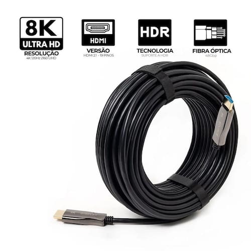 CABO DE FIBRA OPTICA, CONECTOR HDMI VERSAO 2.1, 8K - 60HZ 15MTS