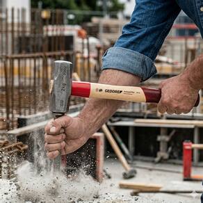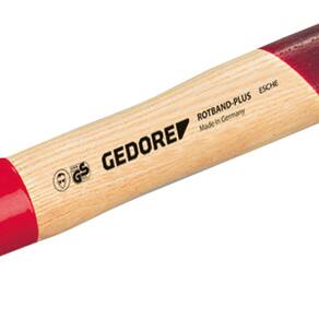 Cabo em nogueira, proteção Rotband-Plus e sistema de fixação em aço especial. Cabo com acabamento em pintura verniz incolor, empunhadura ergonômica e proteção Rotband-Plus em pintura na cor vermelha padrão Gedore. Para reposição nas Marretas Rotband-Plus refs. 620 E. Fornecimento unitário.
