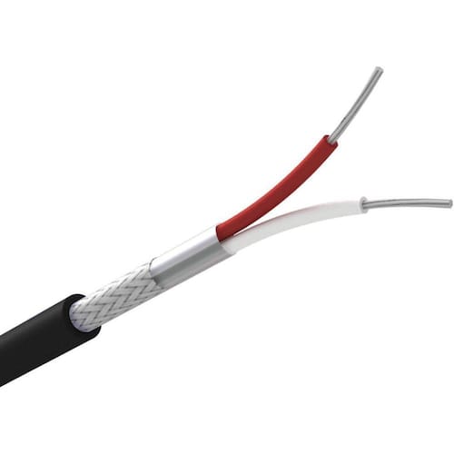 Cabo de microfone balanceado fabricado com liga de cobre ofhc isento de oxigênio , Dupla blindagem fita de alumínio + cobre trançado Bitola 0,20mm / 24awg. Comprimento: 100 m Cor: preto