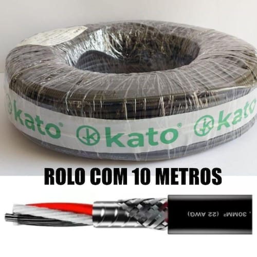 Construção - fabricado em cobre eletrolítico sn - veias cobertas com resina - dupla blindagem malha de cobre estanhado ofhc + fita de poliéster aluminizada - capa final de pv emborrachado com bitola de 2x0,30mm 22awg Onde usar: - guitarra - interligações em instrumentos musicais - equipamentos de áudio -conteudo da embalagem : 10 metros cabo de microfone kato 2 x 0,30mm bf+t preto Marca: Kato Ean: 7908481204760