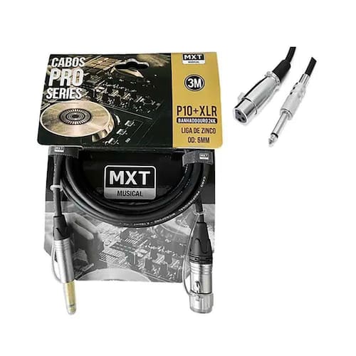 Cabo De Microfone Mxt Pro Series P10/Xlr 3 Metros - Cb0462 Cabo mxt para microfone pro series p10/xlr fêmea - 3 metrosCabo profissional, p10 para xlr fêmea, bamanho 3 metros, banhado a ouro garantindo uma conexão de maior qualidade. Liga de zinco e banho de ouro 24 k, 6 mm. Ideal para gravação de estúdio e som ao vivo, os cabos da linha pro séries criam uma conexão confiável de alta qualidade para um audio ideal. Além do uso de materiais que eliminam ruídos externos, possuem tambem conectores de alta qualidade.Os cabos da linha pró séries possuem condutores de cobre e blindagem em cobre interna, o que reduz a interferência eletromagnética (emi) que é a causa de alguns tipos de ruídos indesejados. Estas caracteristicas tornam o cabos de qualidade profissional, permitindo que o som de um instrumento ou voz flua de forma clara, natural e realista.Marca: mxtModelo: pro seriesConector: banhado a ouro 24kConector de entrada: p10Conector de saída: xlr fêmeaMedida: 3 metrosFornecedor - mxt musical