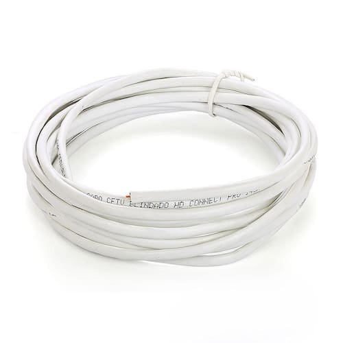 Cabo De Rede Blindado Cat5e Branco - 1 Metro Produzido para transmissão de dados em rede, o Cabo de Rede Blindado CAT5, 24AWG da ChipSCE conta com 4 pares traçados, blindagem, revestimento em PVC anti chamas, e bitola de 24 AWG, oferecendo alta performance no seu projeto.