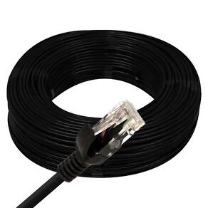 Produzido com revestimento resistente e conectores RJ45 crimpados com precisão, o cabo garante uma transmissão de dados eficiente, suportando velocidades de até 1000 Mbps (1 Gigabit) em frequências de até 100 MHz, dentro do padrão exigido para redes CAT5e. O acabamento na cor preta proporciona um visual discreto, ideal para instalações mais limpas ou corporativas.