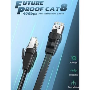 Marca: UGREEN - Qualidade Garantida Nome: Cat 8 U/FTP Ethernet Cable Flat Design Modelo: 10982 Conector: RJ45 8P8C Conectores Blindados e Banhados a Ouro 24K Conectores Protegidos contra Interferências EMI / RFI Condutor : 100% Cobre - Livre de Oxidação Taxa Transmissão: 40Gbps Largura da Band: 1Mhz-2000Mhz Material do revestimento : PVC + aluminio interno AWG: 30AWG Flat Cable Diametro: 2,1mm x 6,2mm Tamanho: 3 metros Cor: Preto