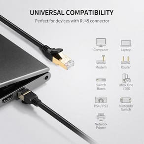 Cabo De Rede Cat 7 Ugreen 5m Deluxe Lacrado 10 Gigabit.O cabo de rede NW107 Cat7 é um cabo de rede RJ45 de última geração que conecta seu dispositivo a uma rede de internet com fio com velocidade de conexão de até 10 Gbps, garantindo desempenho, navegação na web, jogos... etc. tráfego, o cabo de rede Ugreen NW107 é a solução mais perfeita.Recomendado para usuários comuns e profissionais de TI que necessitam de alta velocidade e estabilidade. Ideal para conectar em Computadores, Note books, Consoles ( Xbox One / Xbox Series S/X / PS4 / PS5 / Nintendo Switch ), Smart TV, Moodens, Roteadores convencionais entre outros equipamentos.Características:- Conectores Blindados e Banhados a Ouro 24K- Conectores Protegidos contra Interferências EMI / RFI- 100% Cobre (Livre de Oxidação)- Transmissão Rápida e Estável- Marca: Ugreen- Tamanho: 5 metros- Blindagem: Sim (FTP)- Tipo: CAT7 Ethernet Cable- Taxa Transmissão: 10Gbps- PretoConteúdo da Embalagem:1x Cabo de Rede Ugreen Cat7, 5 Metros, NW107 PretoGarantia de 1 ano de fábrica.