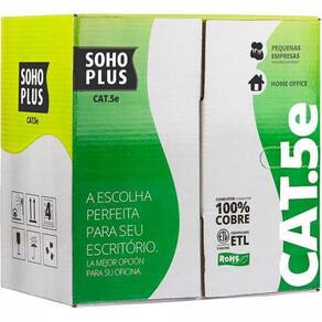 Principal elemento de uma rede, o cabo Sohoplus determina a velocidade em que os dados irão trafegar. Sua correta instalação é importante para garantir a qualidade do sinal. Seus condutores são em cobre nu, trançados em pares. A capa externa é composta de material não propagante à chama. Características: - 4 pares trançados compostos de condutores sólidos de cobre nu 24 AWG - Capa externa em PVC retardante à chama - Embalagem: caixa FASTBOX em lance padrão de 305 metros - Marcação sequencial métrica decrescente 305 - 0 m facilita a visualização da quantidade restante - Produto que atende as políticas de respeito ao meio ambiente. Especificações técnicas Marca: Sohoplus Tipo: Cabo de Rede Modelo: Cabo Transmissão de Dados SohoPlus U/UTP Cor: Cinza Categoria: 5e U/UTP Flamabilidade: CMX Anatel: 00036-08-00256 Diâmetro nominal: 4,8 mm; Massa líquida: 26 kg/km NVP Velocidade Nominal de Propagação : 68% Dimensões: 35 x 35 x 22 cm Peso aproximado: 8kg Aplicações: a. ATM -155 UTP , AF-PHY-OO15.000 y AF-PHY-0018.000, 155/51/25 Mbps; b. TP-PMD , ANSI X3T9.5, 100 Mbps; c. GIGABIT ETHERNET, IEEE 802.3z, 1000 Mbps; d. 100BASE-TX, IEEE 802.3u, 100 Mbps; e. 100BASE-T4, IEEE 802.3u ,100 Mbps; f. 100vg-AnyLAN, IEEE802.12, 100 Mbps; g. 10BASE-T , IEEE802.3, 10 Mbps; h. TOKEN RING, IEEE802.5 , 4/16 Mbps; i. 3X-AS400, IBM, 10 Mbps. Ean: 7893137036270