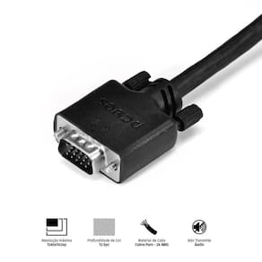 Dados Técnicos: 3+6 15 PINOS Tamanho do cabo: 40M Material do cabo: cobre puro 28 AWG Resolução máxima: 1280x1024p Profundidade de cor: 12 bpc Não transmite áudio Analógico 1280x1024p