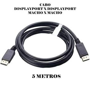 Tamanho: 5 Metros. Conectores: 2 DisplayPort macho. Plug and Play. Displayport v1.2. Resolução máxima de até 4k 60hz. Marca: Não Informado