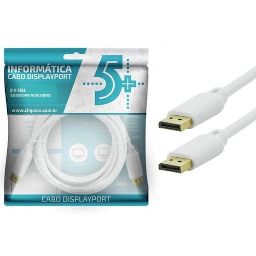 Suporta resoluções de HDTV até 1080p e 2560x1600 para computadores e dispositivos que possua conexão Displayport Tamanho: 5 Metros Ean: 7899744022521