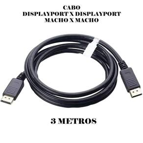 Tamanho: 3 Metros. Conectores: 2 DisplayPort macho. Plug and Play. Displayport v1.2. Resolução máxima de até 4k 60hz. Marca: Não Informado