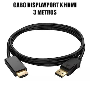 - Conectores: Displayport Macho x H.D.M.I. Macho - Resolução de Vídeo Suportada: 480i, 576i/p, 720i/p, 1080i, 1080p, 2160p - Imagens Suportadas: 2D e 3D - Versões Compatíveis: 1.4 - Compatibilidade: todos os equipamentos com saída Displayport - Revestimento: PVC - Entrada: Displayport Macho - Comprimento do cabo: 3 metros - Cor: Preto