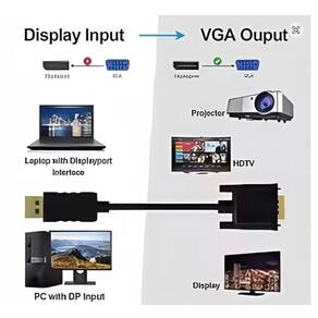 Tipo: Cabo adaptador DisplayPort para VGA Conectores: DisplayPort macho x VGA macho Comprimento: 1,8 metros Resolução suportada: Até 1080p Full HD Compatibilidade: Windows, macOS, Linux Material: Revestimento em PVC resistente Cor: Preto Alimentação: Não requer fonte externa Marca: Não Informado
