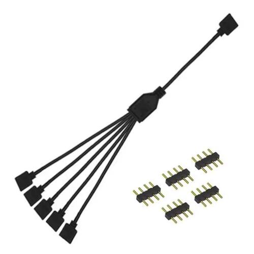 Cabo Divisor Rgb 1 Para 5 12V 4 Pinos 30Cm Cooler Fan Fita Led Cabo Divisor RGB 1 para 5 12V 4 Pinos RGB 30cm - Extensor para Fans e Fitas LED Transforme o visual do seu setup com este cabo divisor RGB de alta qualidade. Projetado para usuários que buscam expandir e organizar a iluminação RGB de seus PCs, este cabo oferece uma solução prática e eficiente para conectar até 5 dispositivos RGB de 12V a partir de uma única saída da placa-mãe ou controlador.