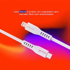 Cabo em silicone USB-C para Lightning na cor branca Com sua construção em silicone de alta qualidade, este cabo é incrivelmente flexível, permitindo fácil manuseio sem preocupações com quebras ou danos aos fios internos. Seu design resistente a respingos e poeira garante que você possa utilizá-lo em qualquer ambiente, seja em casa, no escritório ou em suas aventuras ao ar livre. Incluímos um organizador conveniente para guardar o cabo com facilidade, seja no bolso ou na mochila.\nCategoria: