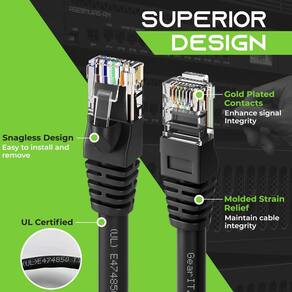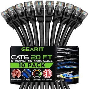 Cabo Ethernet GearIt Cat 6 de 20 pés (pacote com 10) — Cabo de conexão Cat6, cabo de conexão Cat 6, cabo Cat 6, cabo Ethernet Cat6, cabo de rede, cabo de Internet — preto de 20 pés — Alta precisão, compatível com Cat 6, ANSI/TIA-568-C.2, verificado por ETL, cabo de conexão Ethernet LAN, pré-terminado com conectores RJ45 e disponível em uma ampla variedade de cores para obter a cor adequada codificação - Qualidade premium, materiais duradouros, design durável e garantia vitalícia pelo preço de um cabo genérico. Verificado por ETL para garantir máxima confiabilidade e compatibilidade - condutores trançados UTP 24AWG para flexibilidade, torcidos em pares e aninhados em uma ranhura para minimizar a interferência, contatos banhados a ouro de 50 mícrons para transferência de dados em alta velocidade e resistência à corrosão - Compatível com Ethernet 10Base-T, 100base-tx (Ethernet rápida), 1000Base-T (Gigabit Ethernet), 10gbase-t (Ethernet de 10 Gigabit) e ponto a ponto, bem como quaisquer outros dispositivos que usem cabos 8c8p - cabo Ethernet Cat6, cabo de conexão Ethernet, cabo RJ45, vários cabos, cabos eletrônicos, cabo Gigabit, cabo de roteador, cabos de computador, cabo Ethernet/patch, pacote de cabos Ethernet, peças de computador