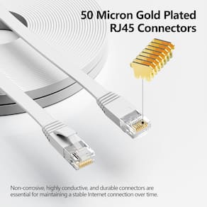 Jadaol Cabo Ethernet Cat 6 de 15 metros, para ambientes externos e internos de 10 Gbps com suporte à rede Cat8 Cat7, cabo de remendo sólido para computador LAN RJ45 de velocidade rápida com clipes - Desempenho Cat 6 a um preço Cat5e, mas com maior largura de banda. Acompanha os 20 clipes de cabo, não é necessário comprá-los em outro lugar. - Cabo de patch Ethernet RJ45 de alto desempenho Cat6, 30 AWG, certificado UL, oferece conectividade universal para componentes de rede LAN, como PCs, servidores de computador, impressoras, roteadores, caixas de comutação, reprodutores de mídia de rede, NAS, telefones VoIP - Jadaol Cabo padrão à prova d'água suporta rede Cat8 e Cat7 e oferece desempenho de até 250 MHz 10Gbps e é adequado para 10BASE-T, 100BASE-TX (Fast Ethernet), 1000BASE-T/1000BASE-TX (Gigabit Ethernet) e 10GBASE-T (Ethernet de 10 Gigabit) - Cabo de conexão UTP (par trançado não blindado) com conectores banhados a ouro RJ45 e são feitos de fio de cobre 100% nu, garantindo o mínimo de ruído e interferência - O formato exclusivo do cabo plano permite uma instalação mais limpa e segura. Você pode facilmente e perfeitamente fazer o cabo correr ao longo das paredes, seguir bordas e cantos ou até mesmo torná-lo completamente invisível deslizando-o sob um tapete. Adequado para uso externo e interno.