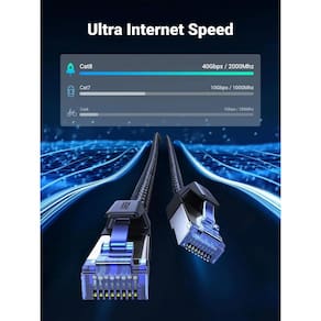 Cabo Ethernet Profissional redondo Cat8 Classe F/FTP com malha de nylon de 2 metros.O cabo de internet Ugreen vem uma design trançado durável, envolvido com cordão trançado de algodão de qualidade, que torna o cabo LAN mais forte e durável. Com alta velocidade de 40 Gbps suporta largura de banda de até 2.000 MHz, excelente anti-interferência projetado com 4 pares trançados blindados (F/FTP) e uma camada de blindagem de folha de alumínio. Em conformidade com o padrão de rede ANSI/TIA-568-C.2-1 - Compatível com sistema CAT 6A e categorias inferiores.Aumente a Performance de Sua rede:Melhore o Throughput (vazão) da sua rede.Parte de problemas de rede são ocasionados por uso de cabos não blindados.Sinais elétricos, eletromagnéticos e de rádio influenciam negativamente para baixa performance da rede.A adoção de cabos CAT8 mitiga esses problemas de interferência, garantindo alta performance no tráfego de rede.Velocidade de rede 2,5x mais rápidaO cabo Ethernet Cat8 suporta o padrão BASE-T de 25 Gbps a 40 Gbps e é mais rápido na velocidade da rede do que os cabos Cat7 que suportam 10 Gbps.Características:- Ultra Velocidade: 25 a 40 GBPS.- Largura de Banda: 2000MHz.- Contatos Blindados e Banhados a Ouro 24K.- 100% Compatibilidade com Entradas RJ45.- Conectores Protegidos contra Interferências eletromagnéticas (EMI) e Interferências de Rádio Frequência (RFI).- Filamentos 100% Cobre (Livre de Oxidação).- Transmissão mais rápida, estável e confiável.- Capa externa de proteção em Nylon, ganho de flexibilidade e mobilidade do cabo.- 2 Metros- PretoRecomendado para melhorar performance de rede, diminuir Latencia e oscilações na comunicação de sua rede.Compatível com os equipamentos abaixo:- PS3, PS4, PS5, PC, NOTEBOOK- XBOX ONE S, XBOX ONE X- INTERLIGAR DISPOSTIVO DE REDE (Switches, roteadores, Access Points).- CFTV, DVR, NVR, CAMERA IP- NAS Storage- SMART TV- STREAM DE VÍDEOS- OUTROS DISPOSITIVOS COM PORTA GIGABITConteúdo da Embalagem:1x Cabo Ethernet Profissional Cat8 Classf/ftp Nylon 2mt UgreenGarantia de 1 ano de fábrica.