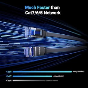 - Alta velocidade de 40 Gbps e 2000 Mhz: a transferência de dados por cabo Ethernet Cat 8 acelera até 40 Gbps e suporta largura de banda de até 2.000 Mhz, que é 4 vezes mais rápida que a Cat 7. É compatível com versões anteriores do Cat7/6a/6/5 e pode reduzir a latência para uma qualidade de sinal superior