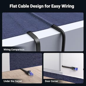 - Estrutura plana: os cabos Ethernet planos são altamente vantajosos por sua flexibilidade e melhor proteção contra empecilhos do que os cabos redondos. Graças à sua estrutura plana, os cabos Ethernet se adaptam facilmente a diferentes superfícies, para que possam ser facilmente colocados debaixo de um tapete, passados pelo canto da porta ou pela parede