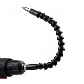 - Eixo flexível para ser conectado em parafusadeira e chaves catraca manuais, auxilia a realizar trabalhos em lugares apertados onde a parafusadeira não entra. Pode ser utilizado em furadeiras onde o impacto sejam leves. - Eixo flexível cabo extensor ideal para mecânicos, pedreiros, marceneiros, encanadores, eletricistas - Produto em aço carbono ótima qualidade, acabamento em plástico resistente