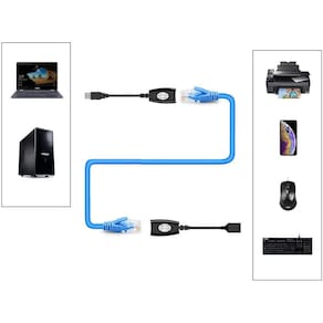 Cabo Extensor Usb Am Via Cabo De Rede Rj45 CAT5 CAT6 -especificações técnicas: NÃO É POSSÍVEL utilizar para conectar o PC Notebook na internet, como conversor de USB para porta RJ-45 - Conexão entre os dois adaptadores através de cabo CAT5 ou CAT6 não incluso ; - Compatível com USB 1.1; 2.0 - Não requer alimentação extra; - Sistema Plug & Play, Não requer driver; - Não deve ser instalado em HUB ou switch; - Pode ser utilizado para conectar mouses, teclados, impressoras, webcam, câmeras, hub ou qualquer outro dispositivo USB. - Compatível com DVRs, desktops e notebooks - Compatível com sistemas de DVR, Windows 98SE/ME/2000/XP/7/10/Linux/Power G3/G4/iBook. -itens inclusos: - 01 adaptador USB macho para RJ45; - 01 adaptador USB fêmea para RJ45. Homologação Anatel: 136132205567 Marca: Não Informado Ean: 7802751377386