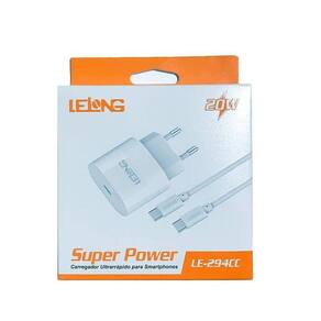 Cabo + Fonte Carregador Turbo Type-C 20W/Lelong Marca: Lelong Atenção: Não é compatível com Iphone