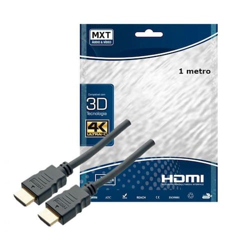 Cabo Hdmi 1 Metro 2.0 4k Ultra Hd Pino Dourado - Mxt Cabo HDMI 1 metro 2.0 4K ULTRA HD pino dourado - MXT Cabo de alta qualidade com 1 metro, atende todas as definições de mercado até 4K. Cabo HDMI versão 2.0, protegido com blindagem, garantindo maior durabilidade, evitando interferências e perda de qualidade. Suporta resolução 4K 2160P. Permite resoluções de vídeo muito além da resolução 1080P, suportando a próxima geração de TV'S e equipamentos que competirão com o cinema digital em uma experiência ULTRA HD. Características: - Tamanho: 1 metro; - Conectividade: TV'S LED, LCD e plasma, monitores digitais, projetores, consoles de vídeo game, BLURAY e etc.; - Compatibilidade: PCM, DVD-áudio, SUPER áudio CD, DOLBY TRU-HD, DTS-HD MASTER áudio; - 3D: Compatível com todos os formatos atuais de 3D; - Velocidade: alta taxa de transferência: 10.2GBIT/S a 340MHZ; - Sinal de vídeo: suporta resoluções de 576i, 576p, 720i, 720p, 1080i, 1080P e 2160P; - HDMI: compatível com versões 1.4, 1.3b, 1.3 e anteriores; - Retorno de áudio: pelo próprio cabo já é possível transmitir o áudio sem a necessidade de passar um cabo à parte; - Canal ETHERNET HDMI: adiciona alta velocidade em redes a um link HDMI, possibilitando aos usuários usufruir de todo benefício dos seus dispositivos IP sem a necessidade de cabos de rede ETHERNET. Informações Técnicas Ean: 7899903131316