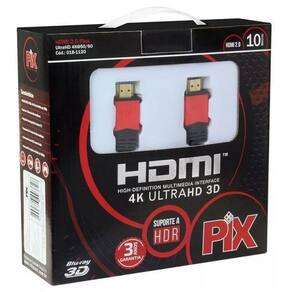 Os cabos PIX estão em total conformidade com o padrão HDMI 2.0, oferecem todos os recursos do padrão 1.4 e além disso, atingem 18Gbps de largura de banda e permitem a resolução de 4K em 3D com até 60 quadros por segundo 32 canais de som e proporção de imagem de cinema (21:9) para a melhor experiência em filmes e games.