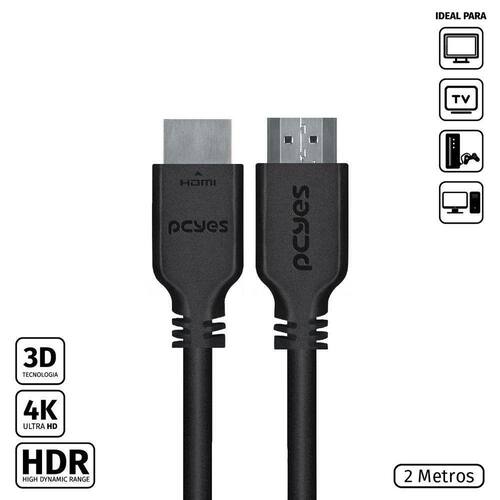 Cabo Hdmi 2.0 4k 30awg Puro Cobre 2 Metros - Phm20-2 Os cabos da PCYES chegaram para determinar um novo patamar de qualidade para aqueles que buscam mais para seus equipamentos de nível profissional, unindo inovação a um custo acessível! São duas linhas completamente desenvolvidas para suprir as necessidades até do consumidor mais exigente, utilizando de design, alta tecnologia e materiais de qualidade para alcançar a excelência. Projetados com foco nos entusiastas, os cabos da PCYES possuem design exclusivo e 100% brasileiro, que combina robustez com minimalismo, além de levar em si a essência da marca, garantindo maior durabilidade e desempenho. Descrição: Este cabo é indicado para dispositivos que possuam conexão HDMI tais como: TVs, monitores, Aparelhos Blu-ray, video-games, placas de vídeo, notebooks etc