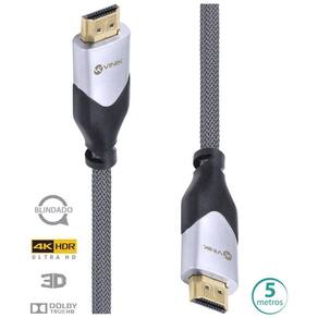Resolução: 4k (3840 x 2160 px) Velocidade de transmissão: 18 Gbps Quadros por segundo (fps): 60 fps em 4k Suporta 3D: Sim Possui um canal de dados Ethernet 100 Mbps Sincronismo labial (Auto lip-sync): Sim Suporta aspecto 21:9: Sim Canais de áudio: 32 canais Frequência do sinal de áudio: 1536 MHz Áudio Dolby True HD: Sim Áudio DTS HD Master: Sim Canal de áudio reverso (Audio return channel): Sim Codificação de vídeo YCbCr 4:2:0: Sim Transmite dois canais de vídeo a 2 destinos: Sim Transmite 4 canais de áudio a destinos distintos: Sim AWG: 28 Revestimento: Nylon Conector: Dourado Blindagem: Sim Comprimento: 5 metros
