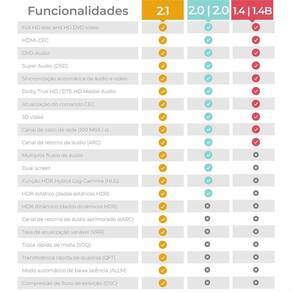 2.0 / 1.4 / 1.3B e todos os padrões HDMI anteriores