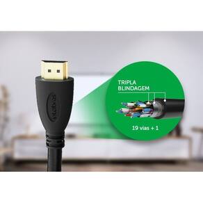 O cabo HDMI 2.1 CH 2105 da Intelbras é a solução ideal para transmitir áudio e vídeo em alta qualidade, suportando as mais avançadas tecnologias do mercado. Com 5 metros de comprimento, oferece flexibilidade para conexões em ambientes residenciais e comerciais, permitindo a transmissão de sinais sem perdas significativas mesmo em distâncias maiores. Compatível com o padrão HDMI 2.1, o CH 2105 suporta resoluções ultra-alta definição como 4K a 120Hz, 8K a 60Hz, e recursos avançados como Dynamic HDR, eARC (Enhanced Audio Return Channel) e largura de banda de até 48 Gbps. Isso garante imagens mais realistas, cores mais vibrantes e som de alta fidelidade para home theaters, consoles de videogame, computadores e outros dispositivos multimídia. O cabo possui conectores banhados a ouro que asseguram maior resistência à oxidação e melhor transmissão do sinal. Seu revestimento reforçado oferece proteção contra interferências eletromagnéticas e maior durabilidade para uso contínuo. Além disso, o CH 2105 é compatível com versões anteriores do HDMI, garantindo versatilidade para diversos equipamentos. Seu design robusto e flexível facilita a instalação em ambientes residenciais e corporativos, com performance estável e confiável. EspecificaçõesCompatível com HDMI 2.1Suporte para 4K@120Hz e 8K@60HzLargura de banda de até 48 GbpsConectores banhados a ouroComprimento de 5 metrosRevestimento resistente contra interferências