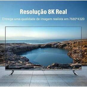 O cabo HDMI 8K da UGreen possui ampla compatibilidade e suporta resolução máxima de 8K 60Hz e é compatível com resoluções inferiores como 8K 50Hz, 4K 120Hz.