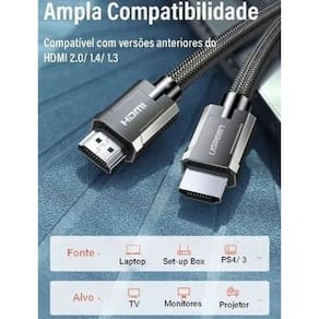 Marca Ugreen Modelo: 40180 Cor: Preto com Cinza Espacial Tamanho: 2 METROS Versão: HDMI 2.1 Suporta até 8K 60Hz Compatível com HDR